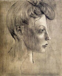 β) Morisot, Η κοπέλα με τη γάτα(1892) / Picasso. Head of woman in profile (1905)